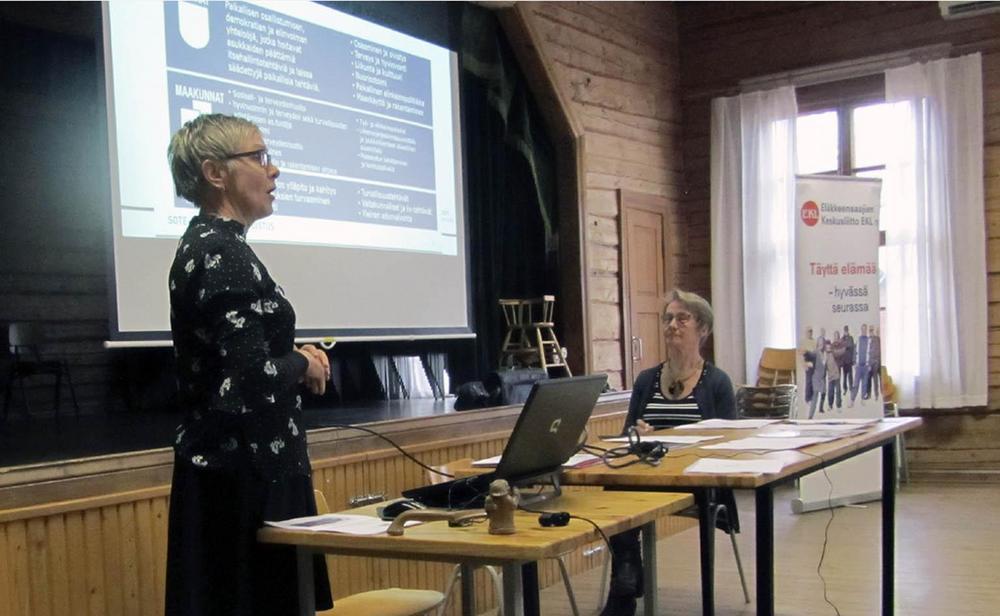 Aluksi Minna Laitila kertoi puheenvuorossaan valmisteilla olevaa Maakunta-, ja SOTE uudistuksesta. Anneli Saarinen keskittyi puheenvuorossaan ikäihmisten elämässä ilmeneviin ongelmiin, kuten sairauksien hoitoon ja hoivan tarpeeseen.